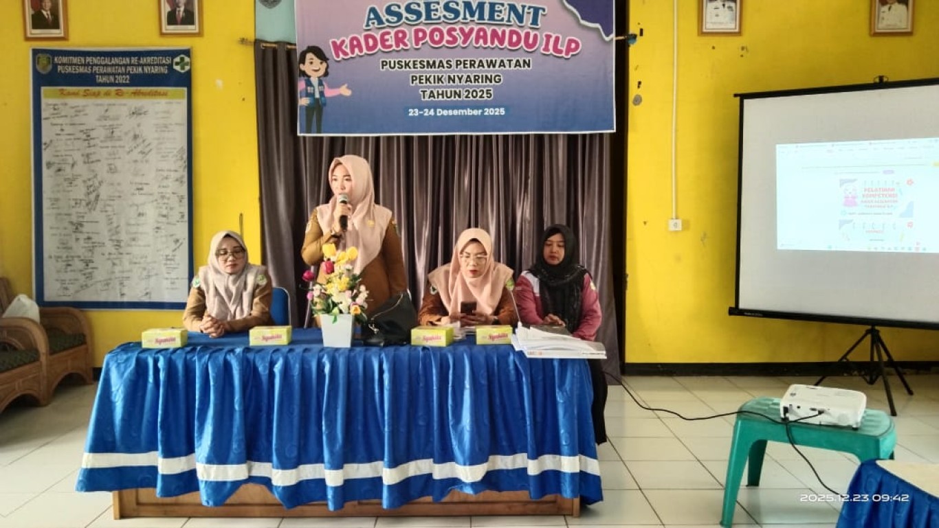 Camat Pondok Kelapa Ridulima, S.Sos., A.Kp., M.A.P Menghadiri sekaligus membuka acara Assesment Kader Posyandu ILP di Aula Puskesmas Perawatan Pekik Nyaring. Acara ini juga dihadiri oleh Kabid Kesmas, Dinas Kesehatan Bengkulu Tengah, Kader Posyandu Desa Pondok Kelapa, Desa Sunda Kelapa, Desa Abu Sakim, Desa Padang Betuah, Kapus Pekik Nyaring beserta Staf. Kegiatan ini dilaksanakan pada tanggal 23 Desember 2025.