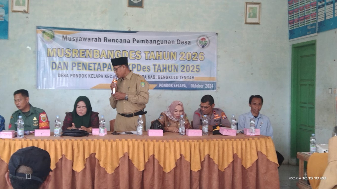 Pada hari yang sama Camat Pondok Kelapa juga menghadiri sekaligus membuka kegiatan Musrenbangdes 2026 dan Penetapan RKPDes 2025 Desa Pondok Kelapa. Hadir pada kegiatan tersebut adalan para pemangku kepentingan yang dada di Desa Setempat, dari Kecamatan dan dari pihak Kabupaten sebagai nara sumber. hadir juga tokoh masyarakat desa setempat.