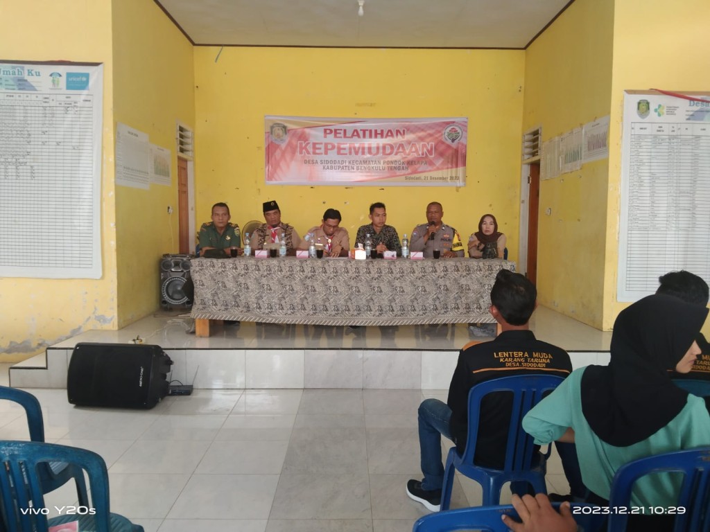 Kegiatan Kepemudaan diikuti oleh 20 orang peserta dari unsur kepemudaan Desa Sidodadi. hadir juga dalam kegiatan tersebut Kepala Desa sebagai Pengguna Anggara, BPD, Camat, Babinkamtibmas dan Kadispora benteng sebagai nara sumber.