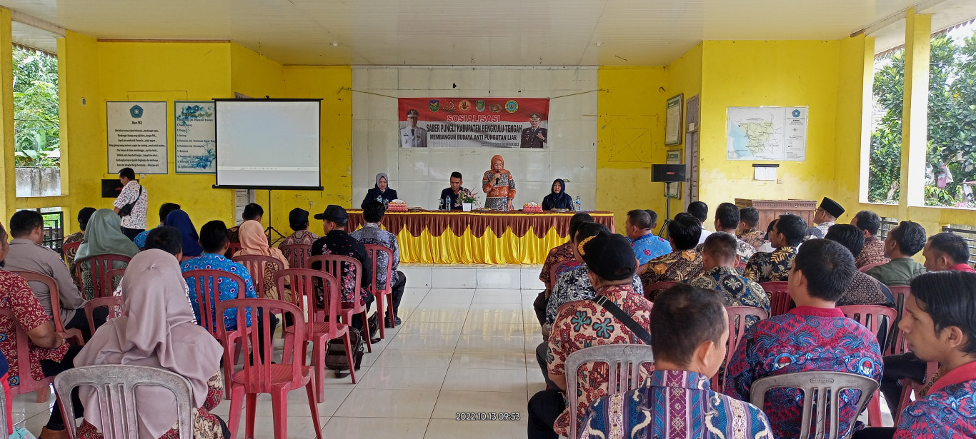 Hari Kamis 13 Oktober 2022 telah dilaksanakan Sosialisasi Saber Pungli oleh Satgas Saber Pungli Kabupaten Bengkulu Tengah di Aula Kantor Camat Pondok Kelapa.