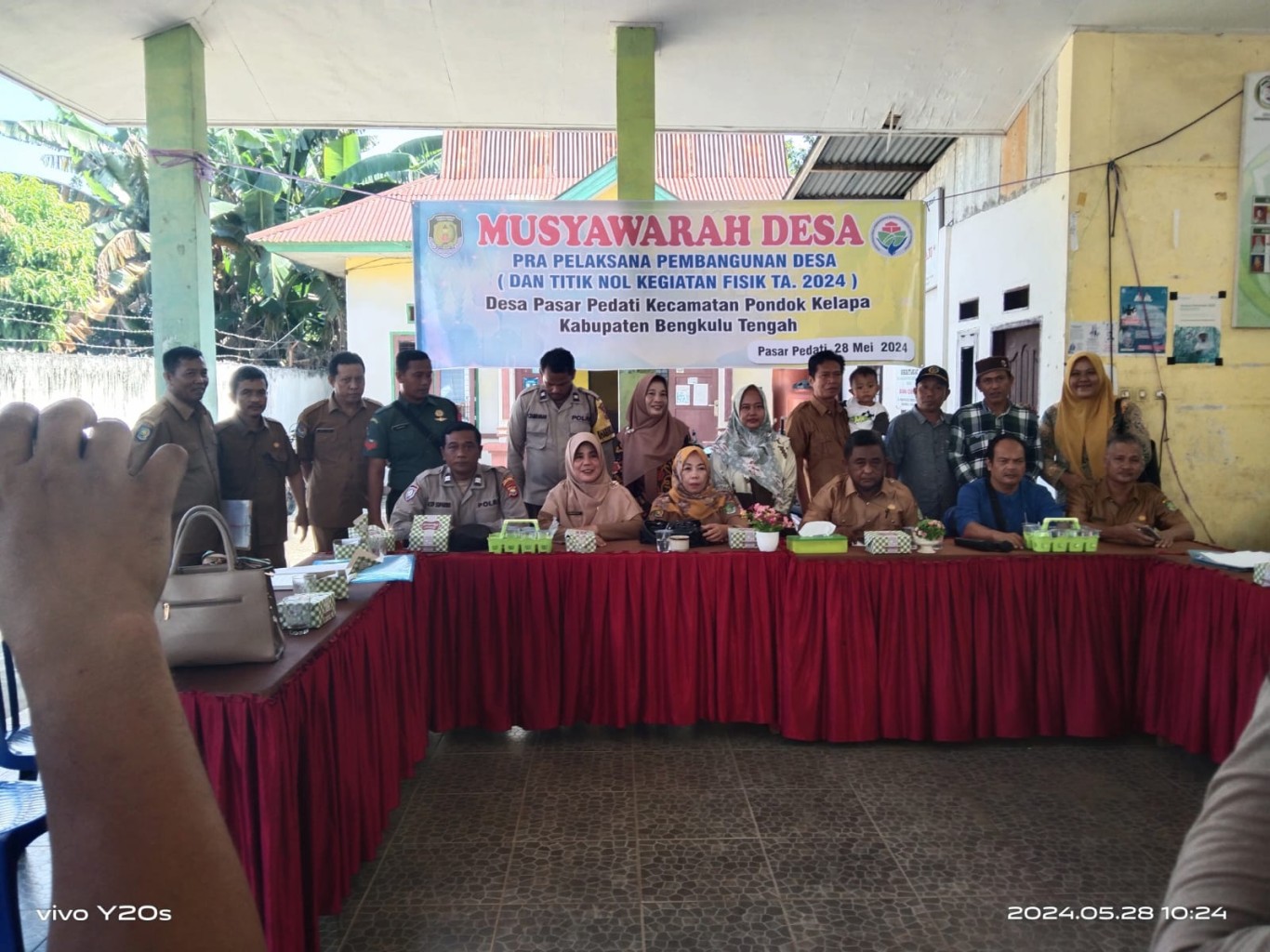 CAMAT PONDOK KELAPA MENGHADIRI UNDANGAN MUSYYAWARAH DESA PRA PELAKSANAAN PEMBANGUNAN DESA PASAR PEDATI