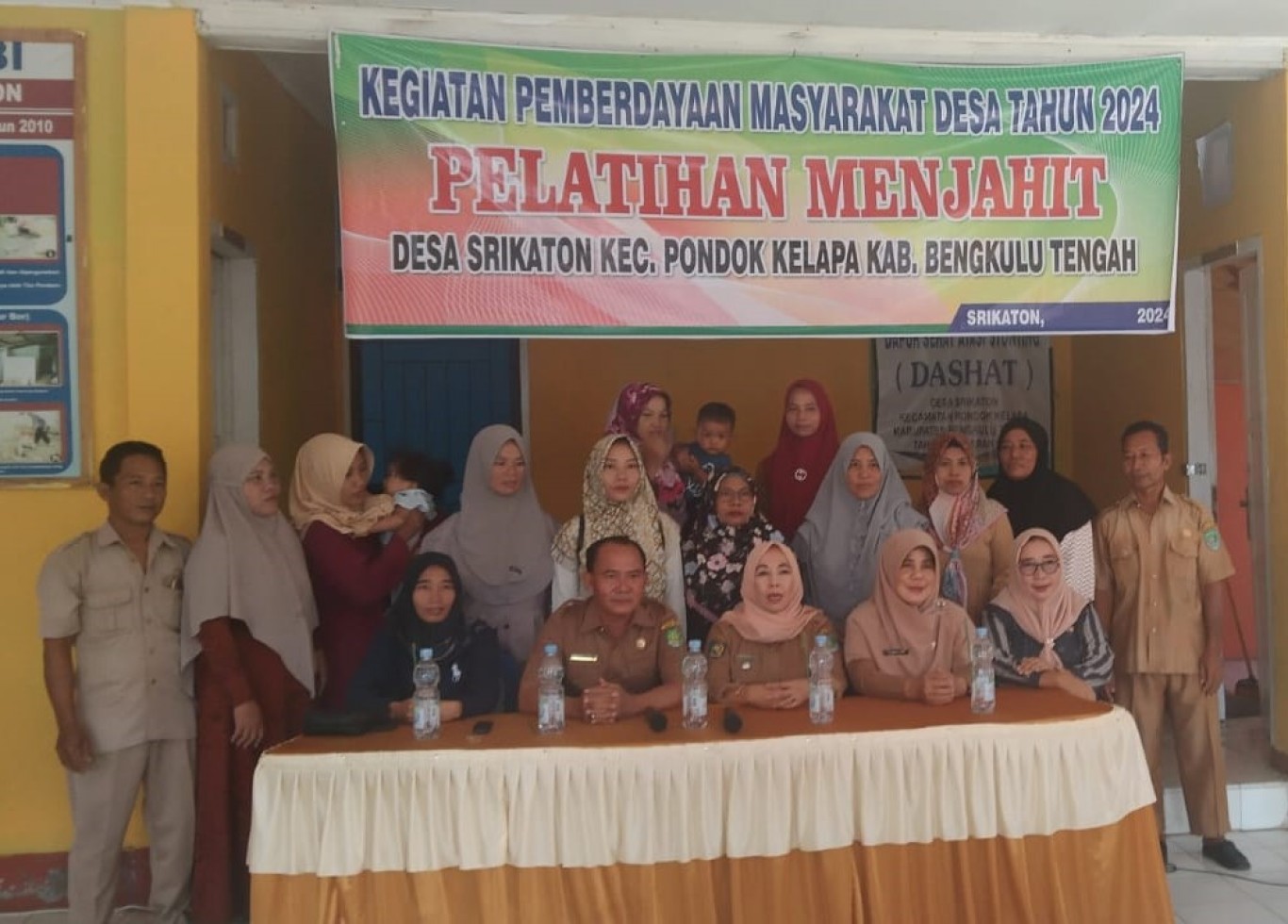 Camat Pondok Kelapa Menghadiri kegiatan sekaligus membuka kegiatan Pelatihan Menjahit di Desa Srikaton.