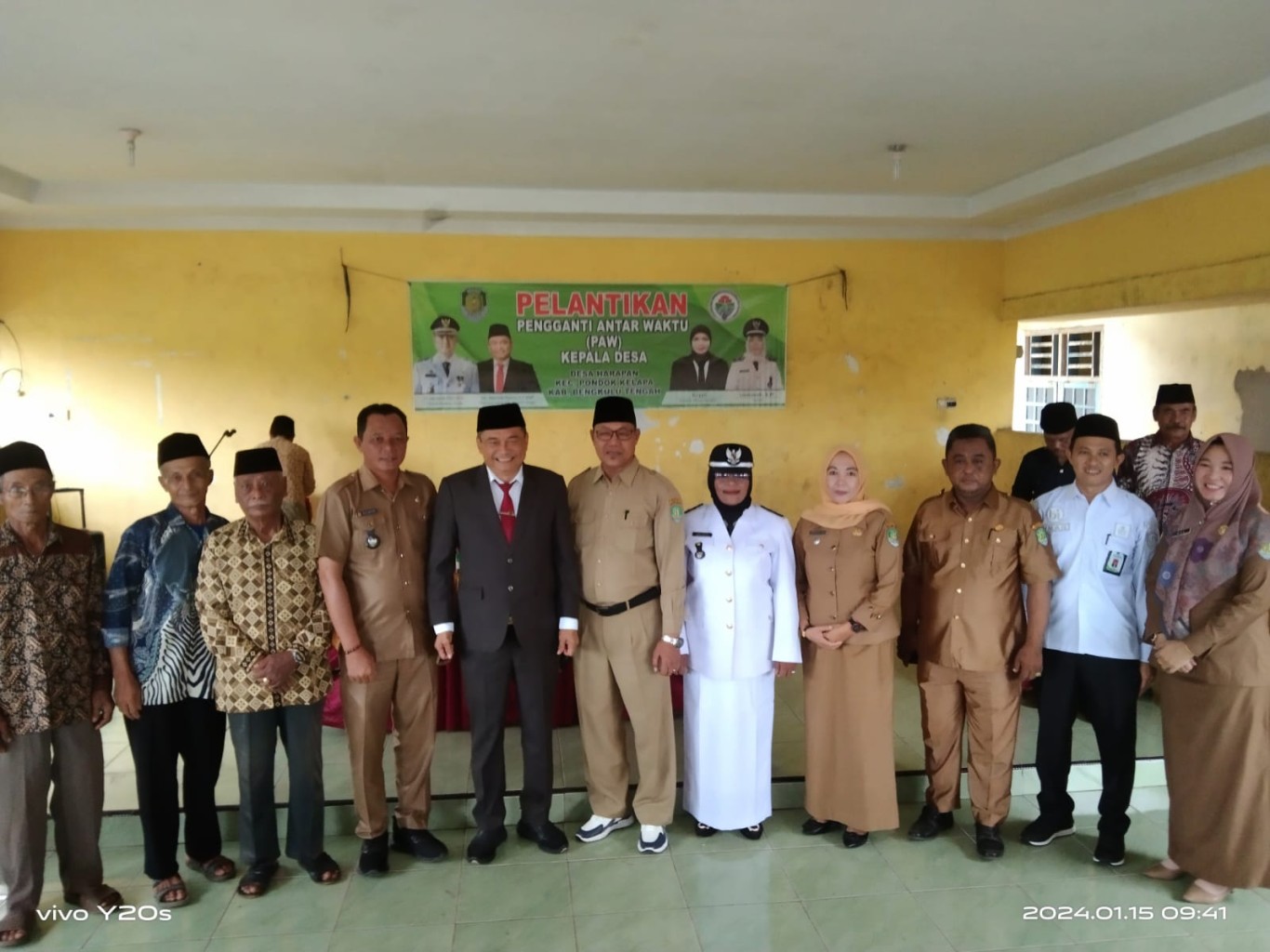 CAMAT MENGHADIRI PELANTIKAN KEPALA DESA ANTAR WAKTU DESA HARAPAN KECAMATAN PONDOK KELAPA KABUPATEN BENGKULU TENGAH